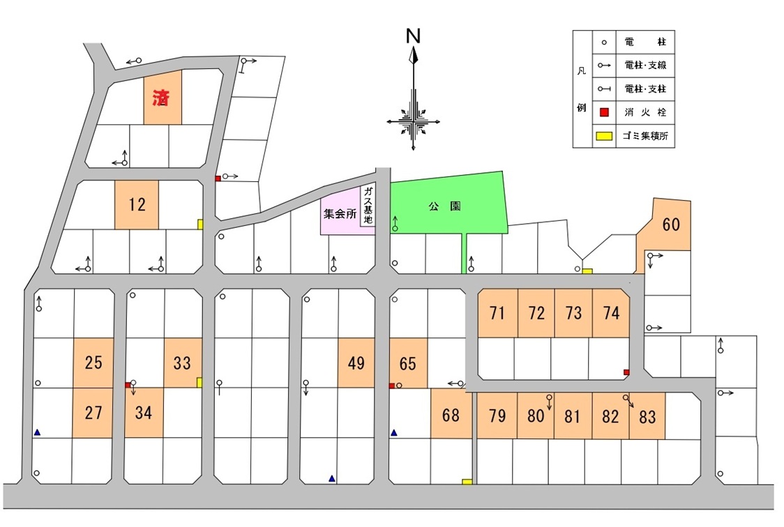 - 電柱、支線、支柱は区画図に表示した位置(敷地内)に設置済です。